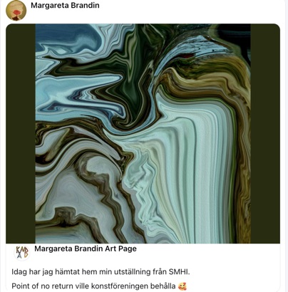 Från facebbok 2 april. Om den utställning jag nyss haft hos konstföreningen på SMHI