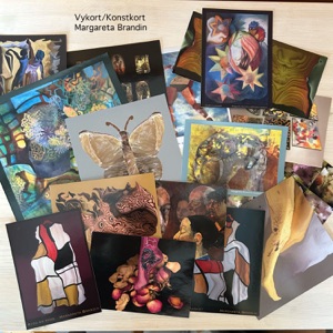 Jag tar ned vykort, memoryspel och Artist Books. Antagligen även en låda med konstbilder på papper i mindre format.